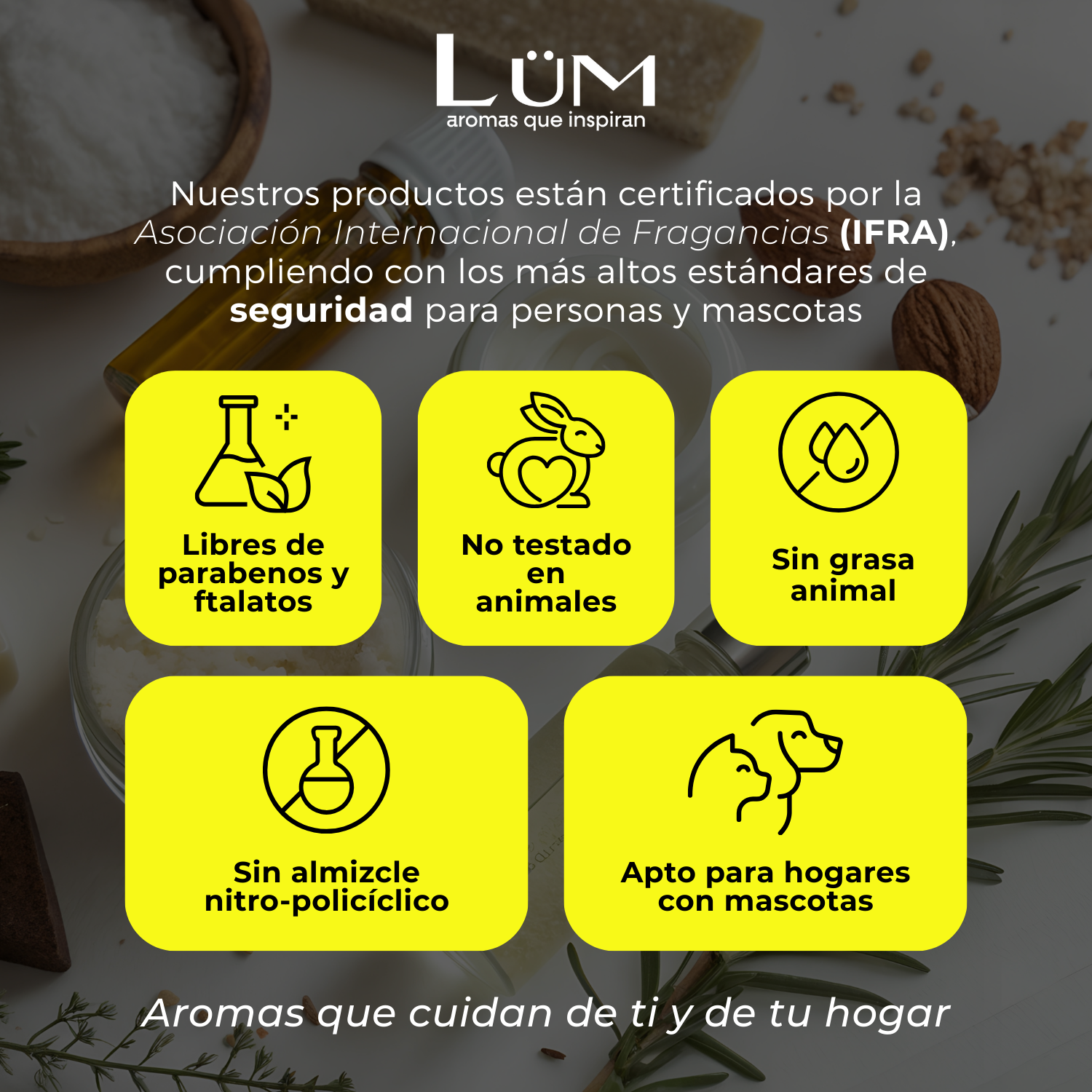 Certificados por la Asociación Internacional de Fragancias (IFRA), lo que garantiza la seguridad para personas y mascotas.